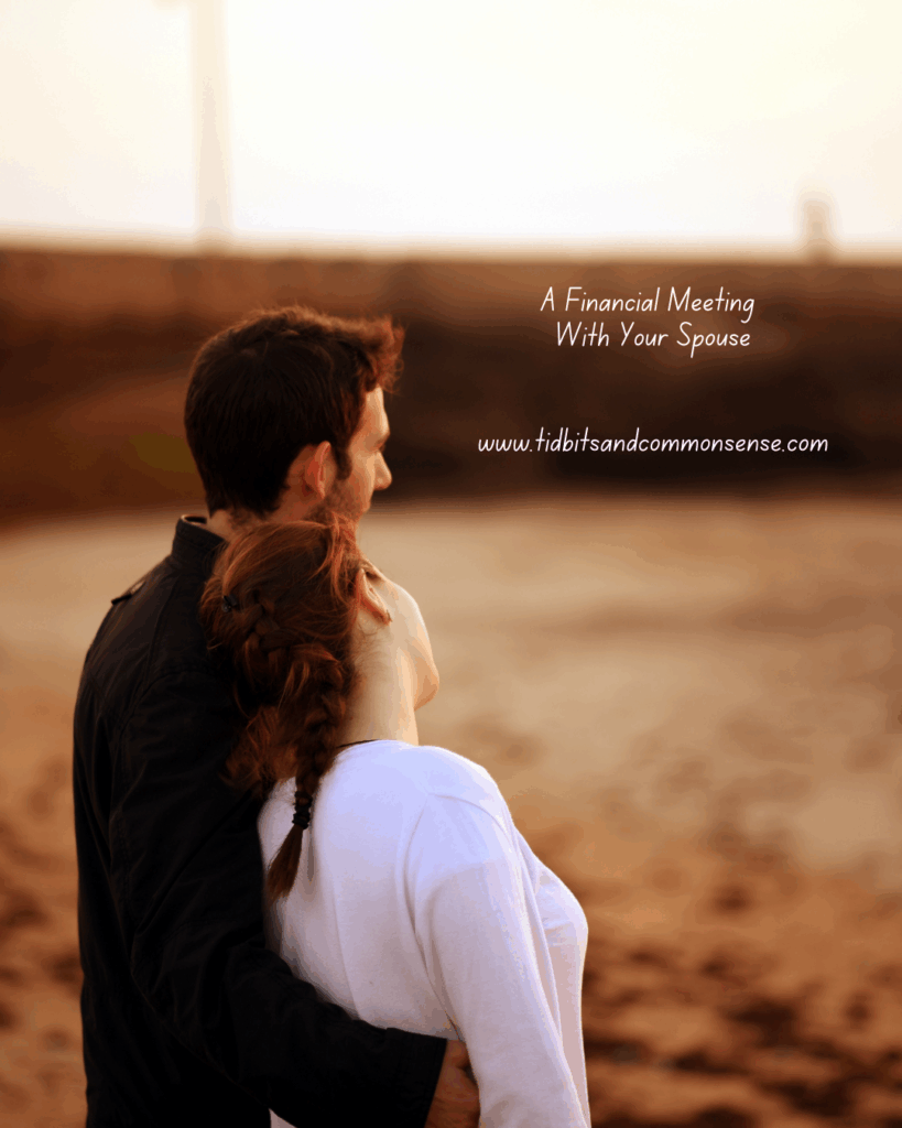 - Pick a day a week or so in advance. Put it on the calendar and choose a place you can sit and talk without interruptions. Have your financial statements and all documents regarding your finances in front of you to discuss.
